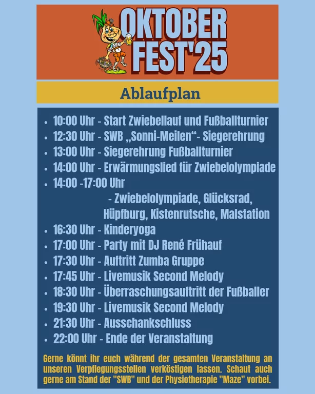 Auch an dieser Stelle möchten wir uns bei den vielen ehrenamtlichen Helfern bedanken, die uns bei Aufbau und Durchführung des Oktoberfests geholfen haben. Im nächsten Jahr ist die zweite Auflage fest eingeplant.